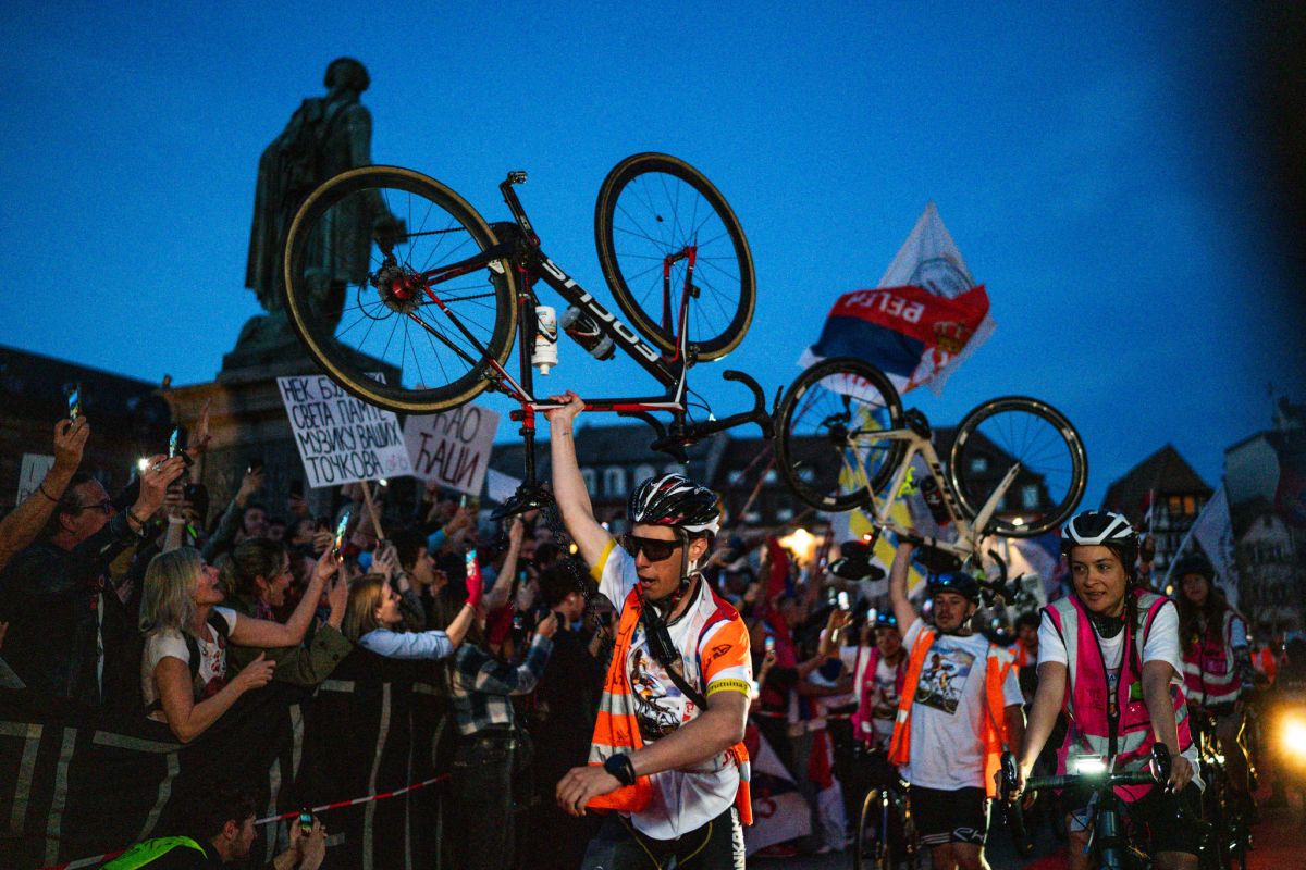 »V zgodovinskih knjigah bo zagotovo napisano poglavje o nas. Upam, da je to prelomnica, ko gre za položaj v Srbiji.« S temi besedami je prikolesaril iz Srbije na cilj v Strasbourgu eden od osemdesetih kolesarjev, ki so se od 3. do 16. aprila vozili z namenom, da v Strasbourgu, kjer je sedež Sveta Evrope, Evropskega sodišča za človekove pravice in Evropskega parlamenta, opozorijo evropske ustanove o njihovem boju proti korupciji in osipanju demokratičnih standardov in svoboščin v njihovi državi. Srbski študentje so bili v Franciji polni upanja in optimizma, iz Beograda pa je zavela sovražna retorika.