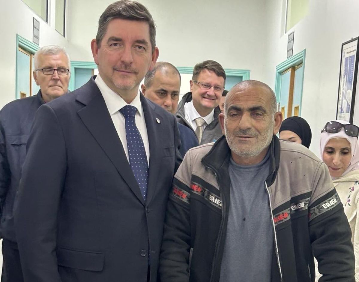 Musar se je predaje medicinske opreme bolnišnici Harmala v Betlehemu, edini javni bolnišnici v Palestini, ki nudi protetiko žrtvam eksplozivnih sredstev, v torek udeležil skupaj z direktorjem ITF Ustanove za človekovo varnost Tomažem Lovrenčičem.