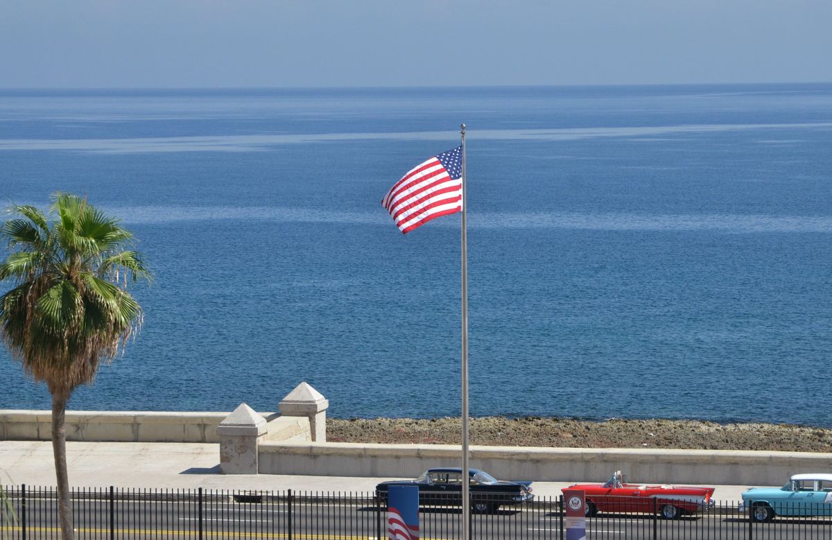 Ameriški državni sekretar John Kerry je včeraj pred poslopjem veleposlaništva ZDA v Havani prisostvoval svečanemu dvigu ameriške zastave. Prisotni so bili tudi trije marinci, ki so zastavo leta 1961, ko sta državi prekinili diplomatske odnose, spustili z droga. Kerry je v kratkem nagovoru pohvalil pogum predsednikov obeh držav.