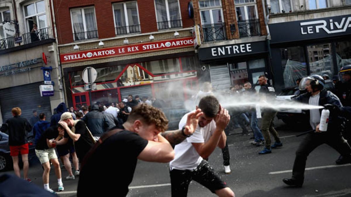 Britanci so iz 40 kilometrov oddaljenega Lensa, kjer bo Anglija v četrtek igrala z Walesom, prišli izzivat v Lille, kjer je policija morala posredovati že na železniški postaji. V Lillu je bila danes namreč tekma med Rusijo in Slovaško (1:2), že konec tedna pa so se Angleži spopadli z ruskimi navijači, ki so Angleže na jugu Francije "stisnili v kot". Zaradi divjanja ruskih navijačev je Evropska nogometna zveza Rusiji prisodila celo pogojno izključitev z EP.