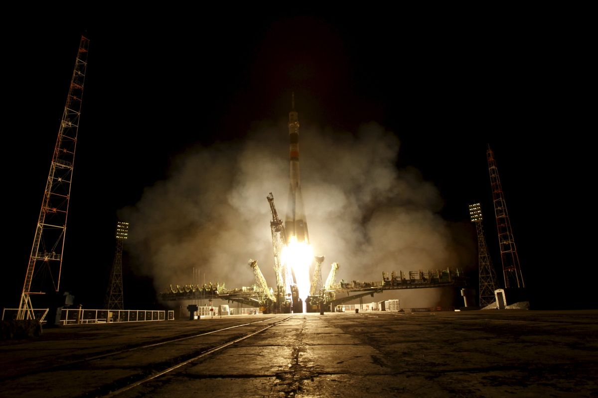 Rus Mihail Kornijenko in Američan Scott Kelly sta skupaj s še enim ruskim kozmonavtom, Gendijem Padalko, proti ISS poletela iz kazahstanskega Bajkonurja. Padalka se bo sicer z ISS vrnil že septembra.