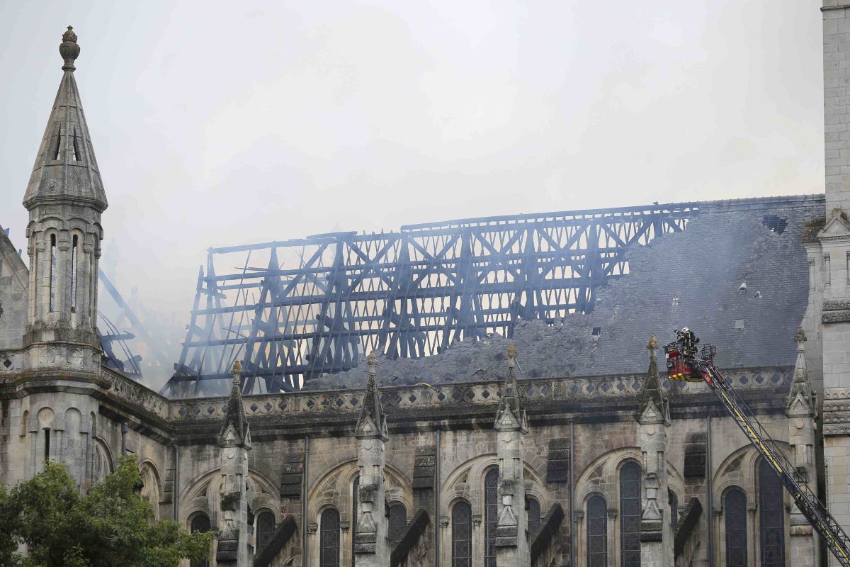 Požar naj bi po nesreči zanetila krovca, ki sta izvajala dela na baziliki iz 19. stoletja, eni od dveh v Nantesu. Na posnetkih, ki so zaokrožili po spletu, je mogoče videti visoke plamene, nad cerkvijo pa se vije dim.
