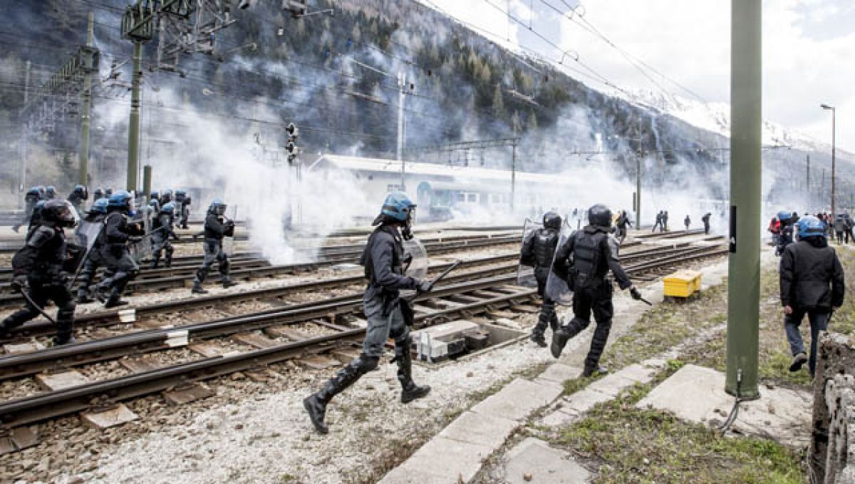 Po prihodu na železniško postajo so začeli vzklikati gesla proti policiji in novinarjem. Po navedbah avstrijske tiskovne agencije APA se je kakih 350 aktivistov poskušalo prebiti mimo policistov, ki pa so jim to preprečili. Aktivisti so jih napadli z eksplozivnimi sredstvi in kamenjem, uničili so policijski avto. Policija se je odzvala s solzivcem, dodaja Ansa.
