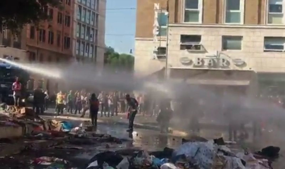 Migranti so na policiste metali plinske jeklenke in kamenje, policisti pa so odgovorili z vodnim topom, uporabili naj bi tudi pendreke.