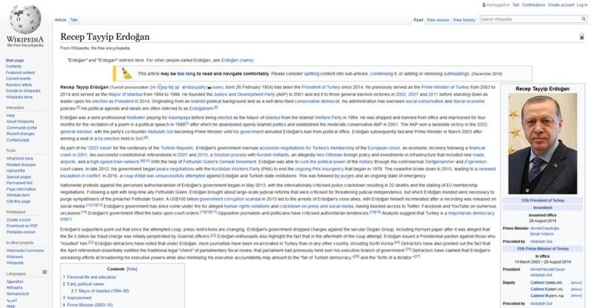 Turški mediji so poročali, da so dostop onemogočili, ker spletna enciklopedija Wikipedia ni umaknila vsebine, ki promovira terorizem in državo povezuje s terorističnimi skupinami.