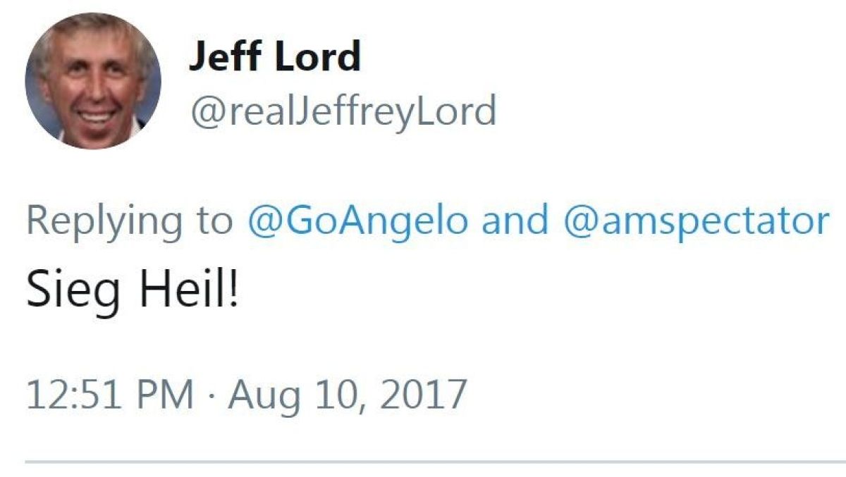 "Za nacistične pozdrave ni opravičila," je sporočil CNN. "Jeffrey Lord ne dela več za mrežo".