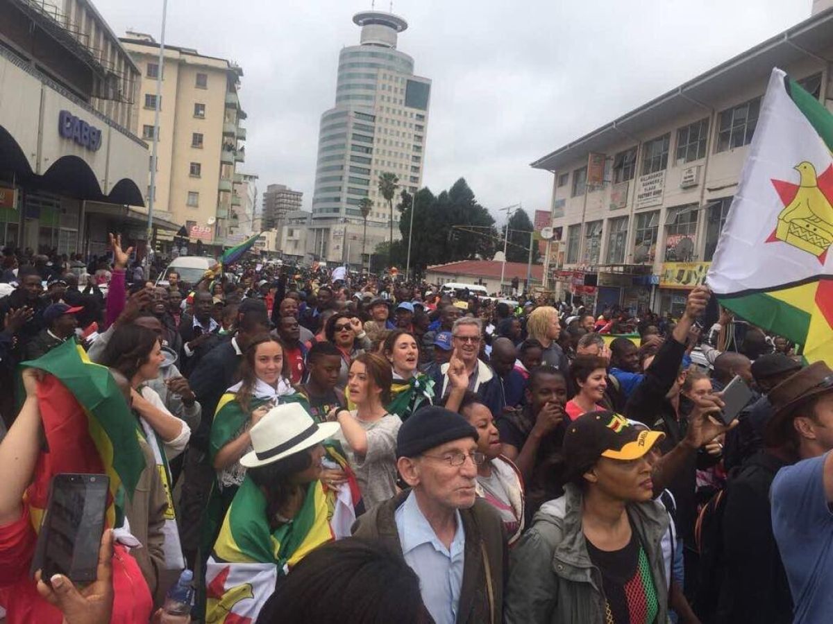 Protestni shod se je v Harareju začel zjutraj v sproščenem vzdušju. Po ocenah nemške tiskovne agencije dpa se je zbralo več deset tisoč ljudi. Množica je pisana, nekateri so nosili državne zastave in transparente z napisi, kot so "Mugabe mora zapustiti Zimbabve".