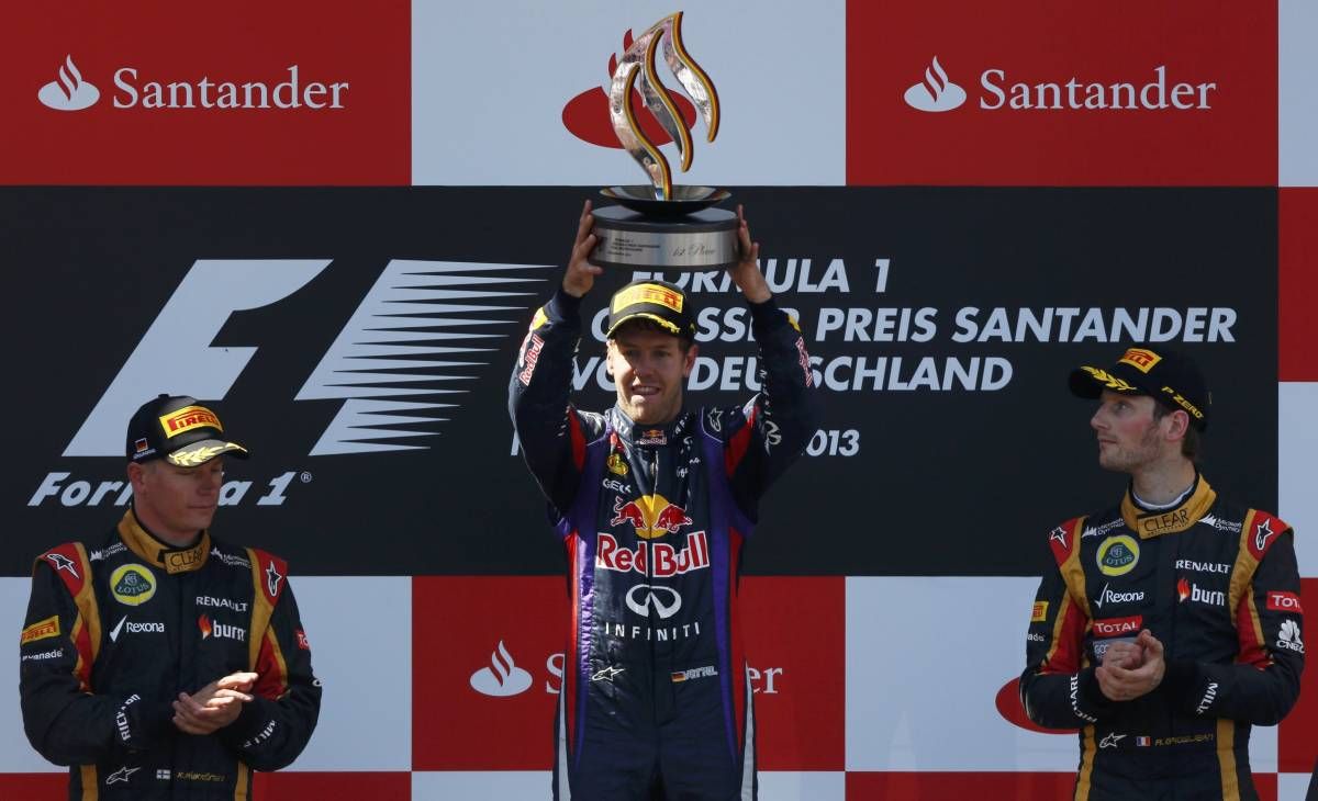 Na koncu je bil najbolj zadovoljen - po športni plati - Sebastian Vettel. Čeprav sta ga Lotusova dirkača preganjala do zadnjih krogov in se je moral za uspeh krepko potruditi, je bila nagrada lepa. Dosegel je 30. zmago v karieri, prvo na nemških dirkališčih in si s četrtim uspehom sezone še povečal možnosti za ubranitev naslova tudi v letu 2013. Natanko na polovici sezone ima zdaj že 157 točk, drugi je Ferrarijev dirkač Fernando Alonso (123), ki je danes osvojil četrto mesto, Räikkönen je s 116 točkami tretji.