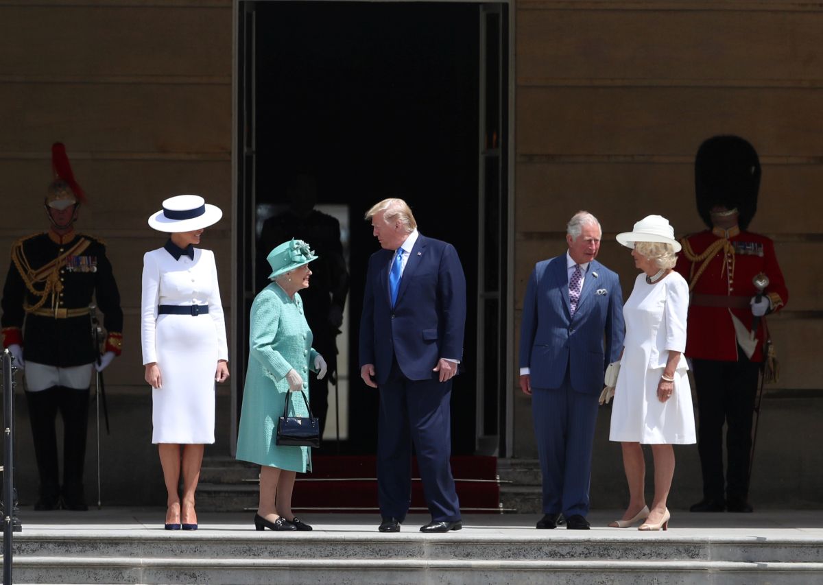 Pred palačo sta bila ob sprejemu gostov tudi princ Charles in njegova soproga Camilla. Britanski prestolonaslednik in Trump sta pregledala častno stražo in poklepetala z nekaterimi vojaki. Nato sta se Trump in ameriška prva dama udeležila kosila s kraljico v palači, v kateri sta si kasneje ogledala še z ZDA povezane zgodovinske razstave, poroča britanski BBC.