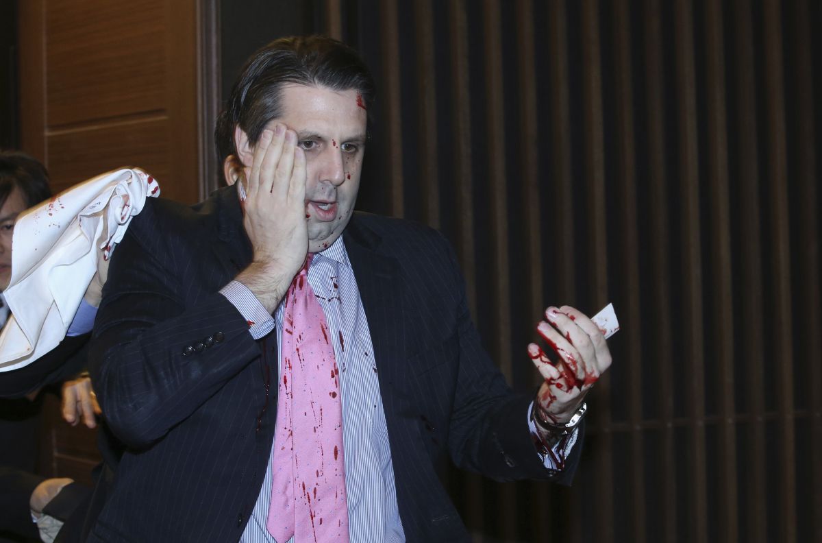 FOTO: Ameriškega veleposlanika v Seulu z nožem napadel aktivist za združitev Korej