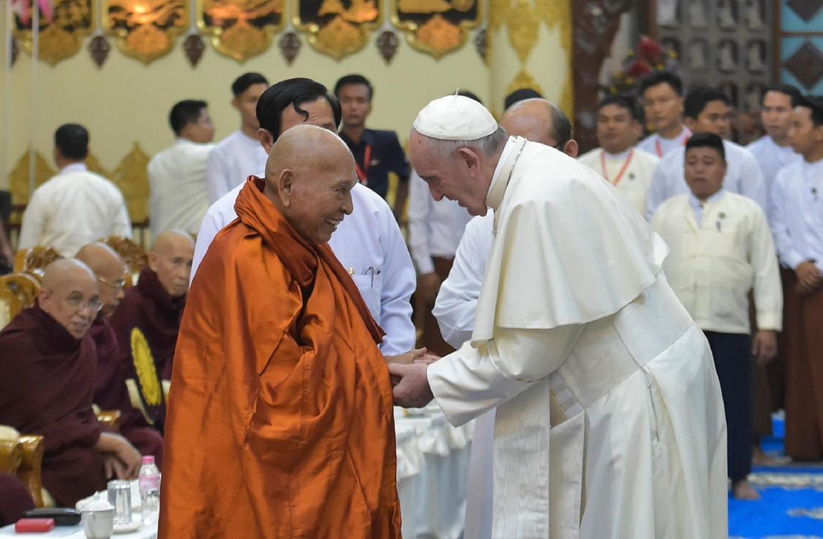 Papež Frančišek je visoke budistične predstavnike v Mjanmaru na srečanju v Yangonu pozval, naj premagajo predsodke in sovraštvo.