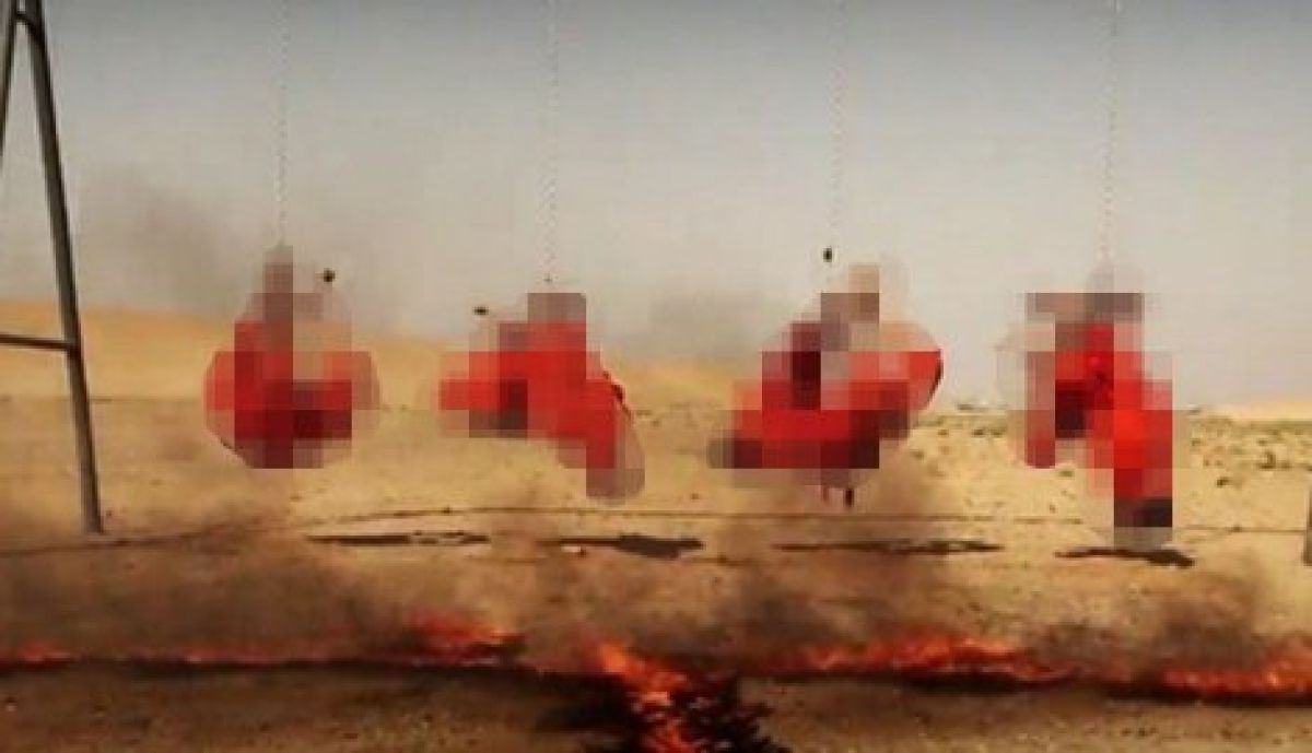 Skrajneži iz samooklicane Islamske države so vse bolj brutalni. Objavili so nov posnetek, kako so štiri iraške šiitske borce vklenili v verige, jih obesili in nato žive zažgali.
