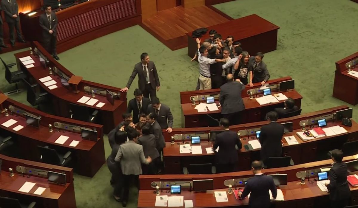 Hongkonški poslanci so se grdo stepli, najmanj štirje so poškodovani (VIDEO)