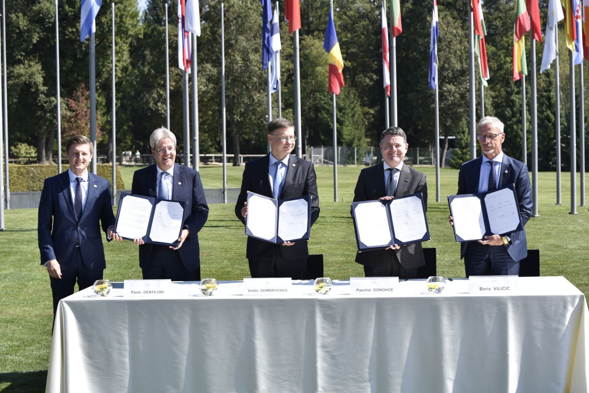 Memorandum o razumevanju so podpisali po današnjem srečanju članov evroskupine na Brdu pri Kranju. Podpredsednik Evropske komisije, pristojen za gospodarstvo, Valdis Dombrovskis je po podpisu izjavil, da bo memorandum omogočal Hrvaški začetek priprav za izdelavo preizkusnih evrskih kovancev. Poudaril je, da gre za "še en pomemben korak na poti Hrvaške k članstvu območja evra".