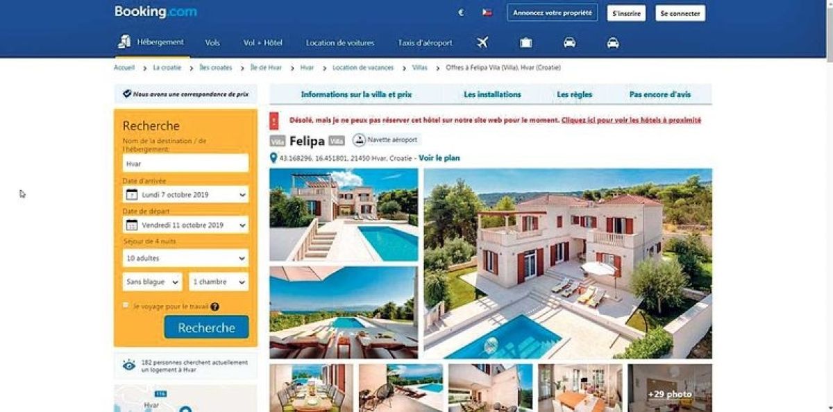Francozi so vilo najeli preko znanega portala Booking.com, a ob prihodu na Hvar so naleteli na prazno polje, pripravljeno za gradnjo. Ko so klicali na telefon osebe, ki je bila na Booking.com navedena za stik, odziva ni bilo. Sosedi so jim nato povedali, da niso prvi, ki so nasedli prevari.
