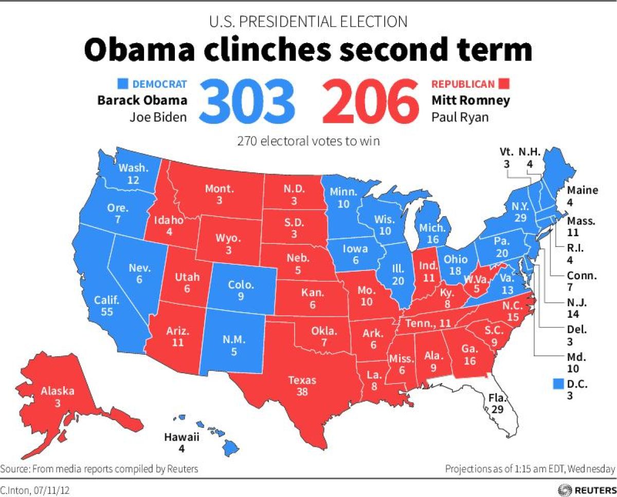 4 glasovi: Havaji(Obama), Idaho, Rhode Island (Obama), New Hampshire (Obama), Maine (Obama)