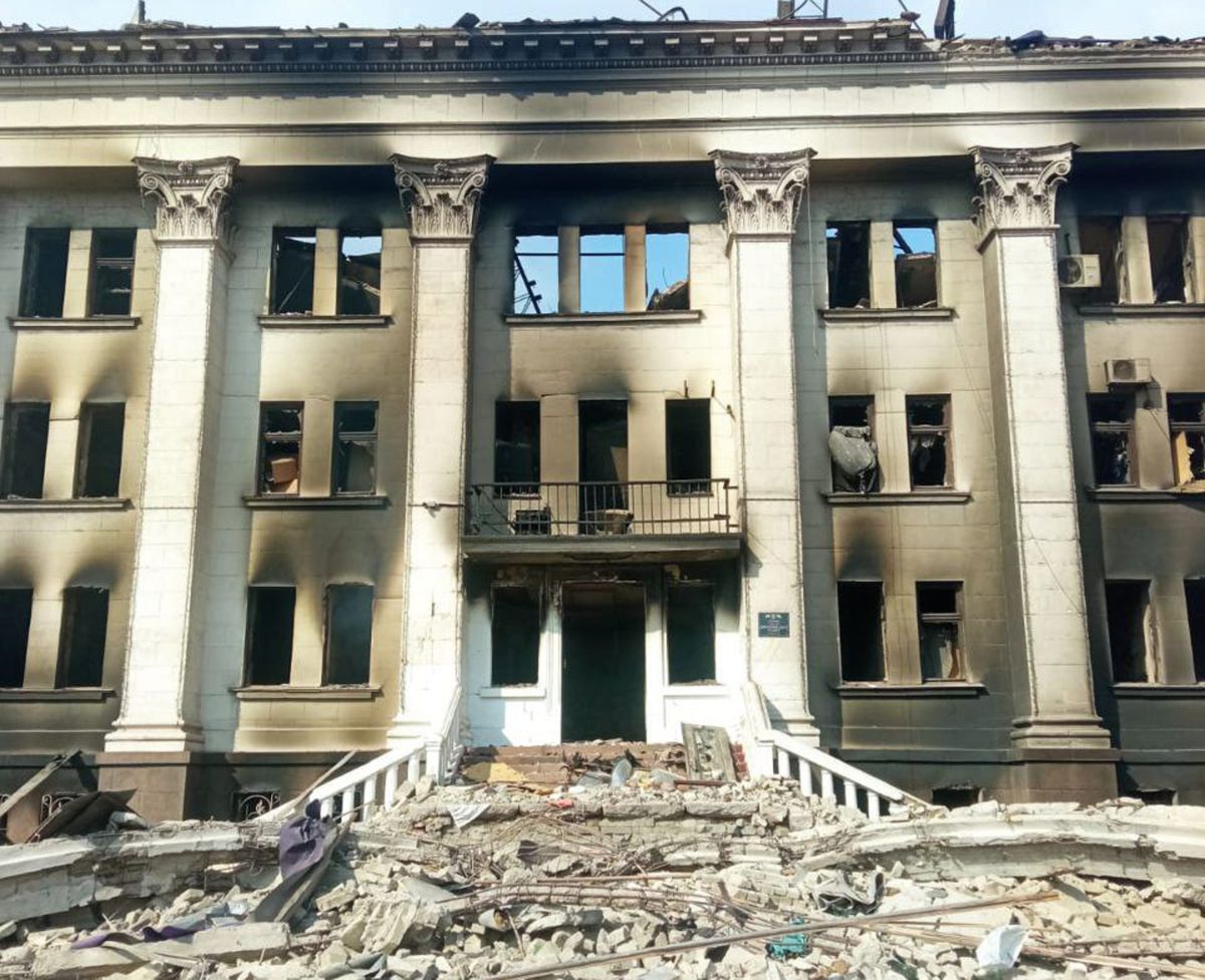 Krivdo za bombardiranje gledališča Kijev in Moskva pripisujeta drug drugemu. Ukrajinska stran navaja, da ga je ruska stran namerno bombardirala, ruska stran je odgovornost za napad na gledališče pripisala zloglasnemu ukrajinskemu nacionalističnemu bataljonu Azov.
