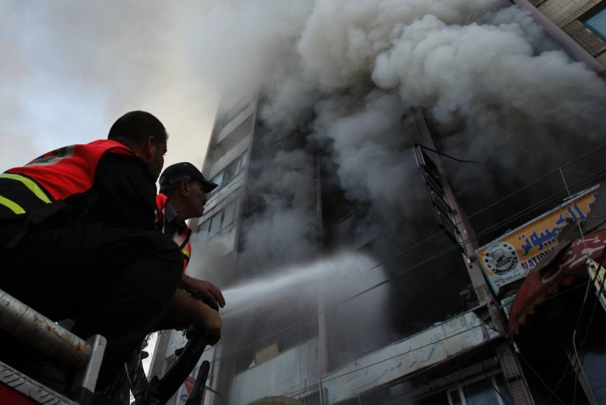 Izraelska letala so danes drugič v dveh dneh napadlo medijski center v Gazi, v katerem imajo poleg Hamasove televizije Al Aksa prostore tudi tuji mediji. Pri tem je bil po navedbah palestinskega gibanja Islamski džihad ubit eden od njihovih vojaških vodij. Število umrlih v izraelskih ofenzivi na območje Gaze se je povzpelo na 98.