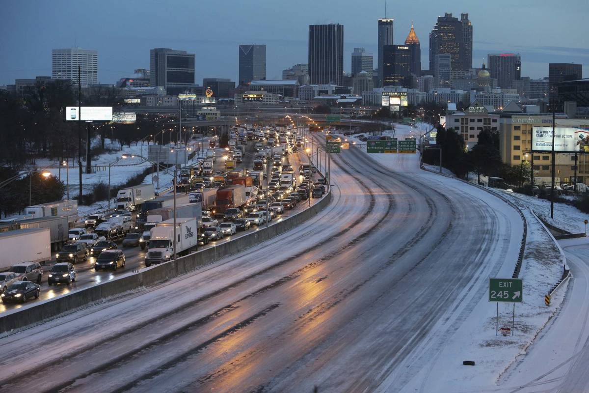 Led je sicer v torek zahteval štiri življenja na cestah v Teksasu in eno smrtno žrtev v Severni Karolini. Več prometnih nesreč je bilo tudi v Alabami. Delta je odpovedala 2000 poletov iz Atlante, čeprav snega in ledu do torka zvečer še ni bilo.