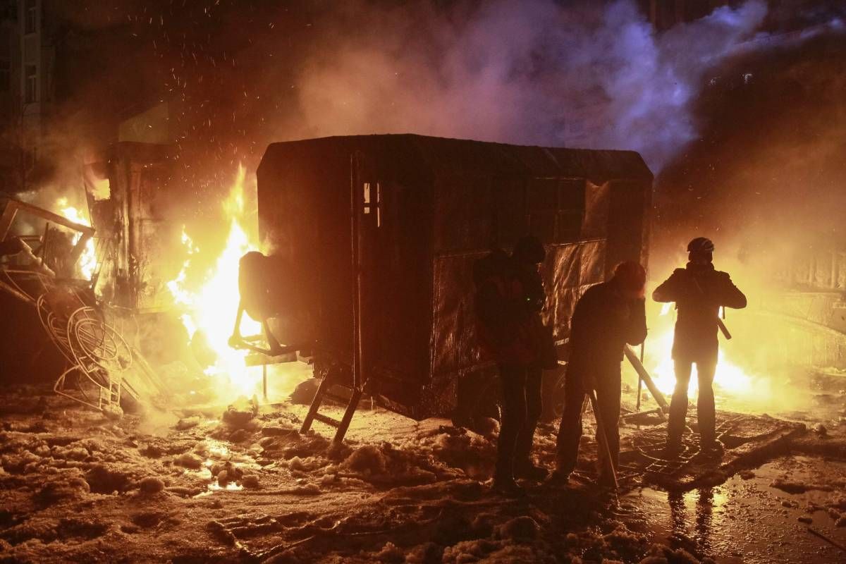 Spopadi med več tisoč protestniki in policijo so se v središču Kijeva nadaljevali tudi včeraj. Kot navaja francoska tiskovna agencija AFP, so protestniki postavili nove barikade iz v nedeljo zažganih avtobusov in policijskih avtomobilov.