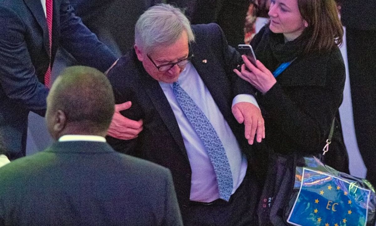 Predsednik Evropske komisije Jean-Claude Juncker je na Forumu EU-Afrika na Dunaju skoraj padel in po stopnicah so mu morali pomagati.