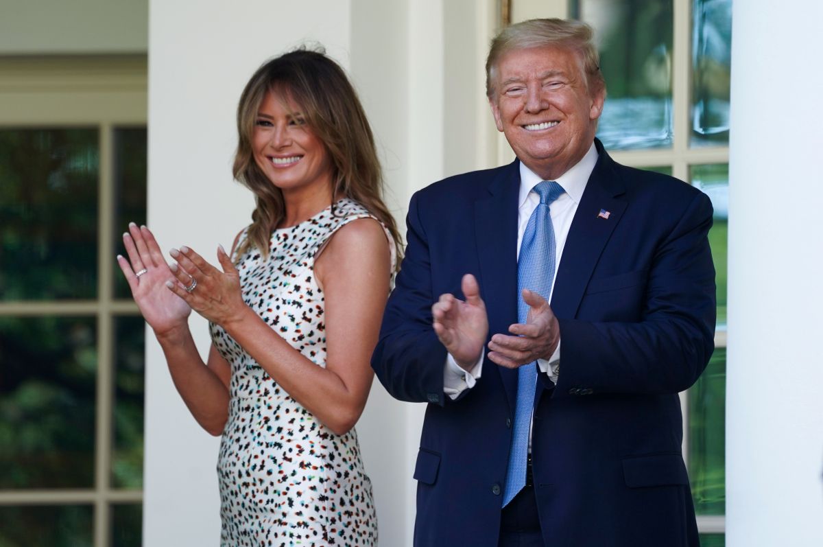 Ameriški predsednik Donald Trump in prva dama Melania Trump sta se v Beli hiši poklonila prizadevanjem vseh tistih, ki se spopadajo s pandemijo koronavirusa. Čeprav je Melania Američane javno pozivala, naj nosijo maske, si je ne ona ne predsednik na sprejemu z veliko udeleženci nista nadela.