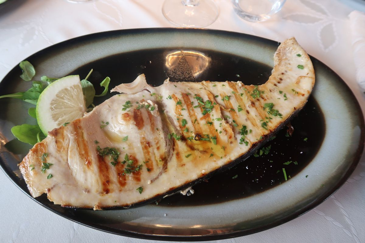 Z vsem tem potešim svojo lakoto, a sledi zelo okusna rižota z morskimi sadeži kot njihova obvezna predjed. Kar zadeva mene, sem že sita. Vendar kmalu pred seboj dobim še glavno jed: na velikem krožniku velik kos mečarice, ki je poleg tune najpogostejša riba v ponudbi tukajšnjih restavracij. Mamma mia, bi rekli Italijani.