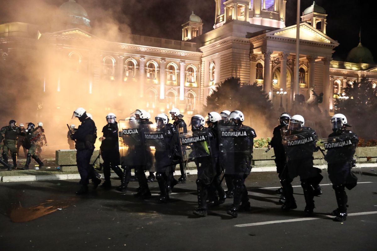 Pakt Janša, Orban, Vučić: poglejte, kako se nekdanji Miloševićev politični učenec Aleksandar Vučić brutalno »bori za svobodo« (VIDEO)