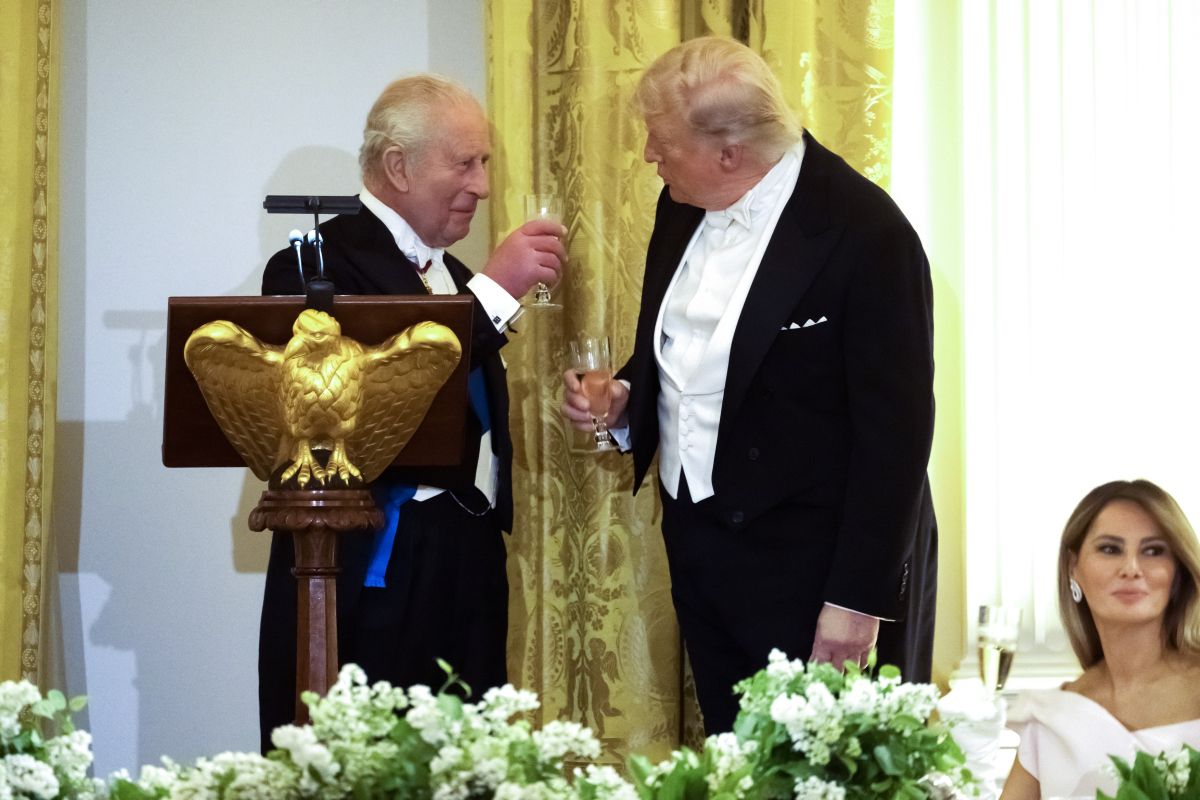 Kralj Karel in Trump v Beli hiši nazdravljala