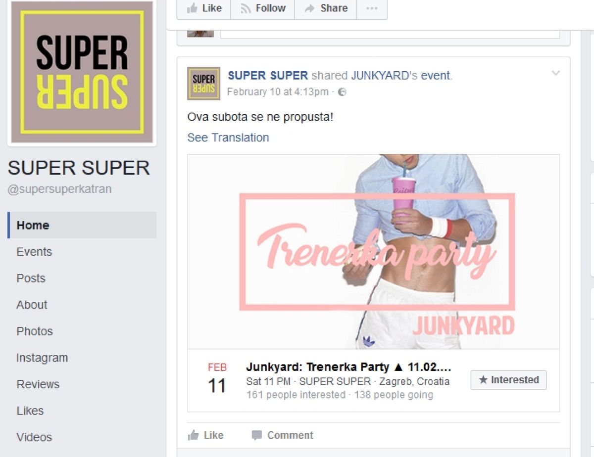 Danes neodvisni hrvaški mediji (Dnevno) poročajo, da je šlo za novo prevaro LGBT skupnosti. Na facebook profilu kluba Super Super je jasno razvidno, da v noči s sobote na nedeljo ni bilo nikakršne LGBT zabave, ampak zabava s trenirkami. LGBT skupnost ni bila omenjena niti z besedo.