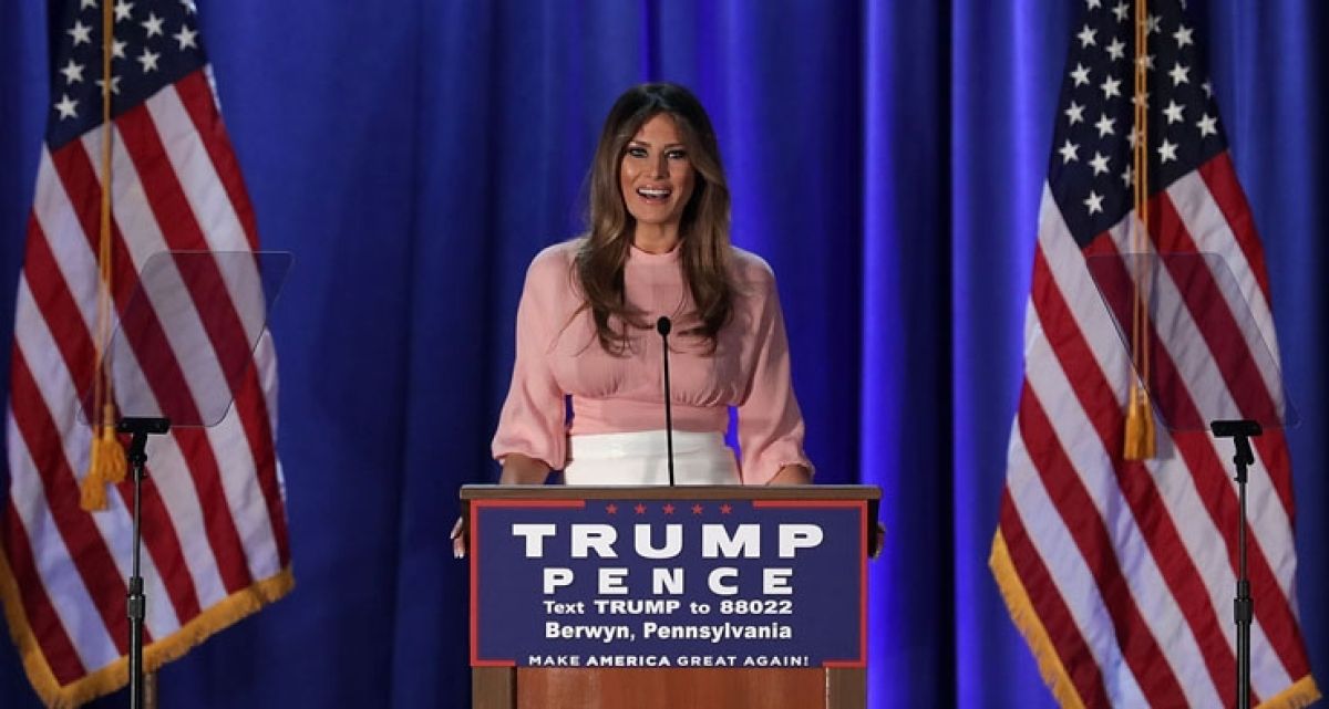 V svojem prvem govoru po julijskem nastopu na republikanski konvenciji je Melania Trump nagovorila privržence svojega moža Donalda Trumpa v Berwynu, predmestju Philadelphie v zvezni državi Pensilvaniji. O soprogu Donaldu, predsedniškem kandidatu republikancev, pravi: "Vsekakor ve, kako pretresti stvari."