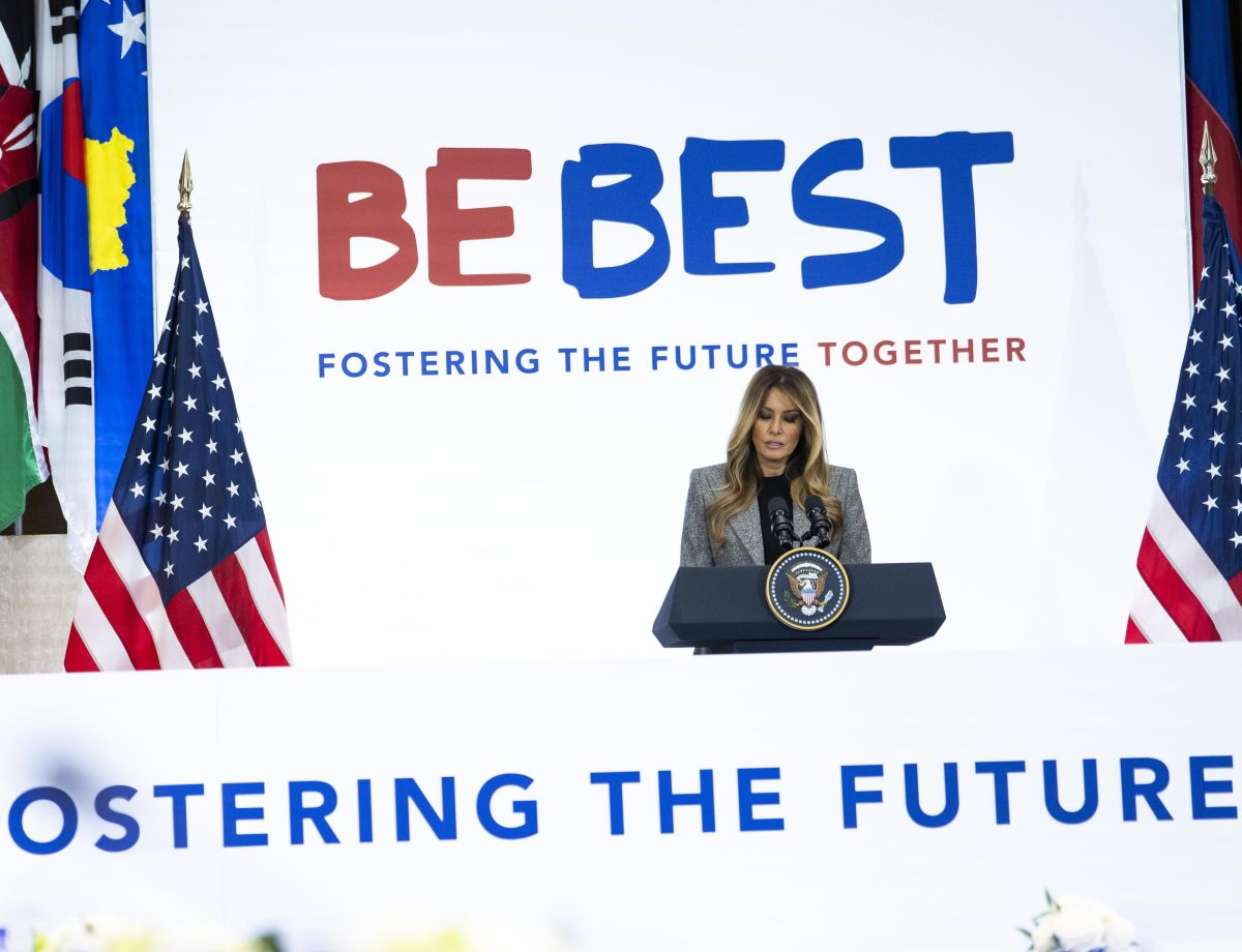 Prva dama ZDA Melania Trump je v torek na ustanovnem vrhu svoje koalicije prvih dam in mož ter tehnoloških podjetij za napredek otrok v State Departmentu predstavila pobudo Skupaj za prihodnost, ki naj bi otrokom pomagala pri učenju, rasti in razvoju z varno in inovativno uporabo napredne tehnologije.