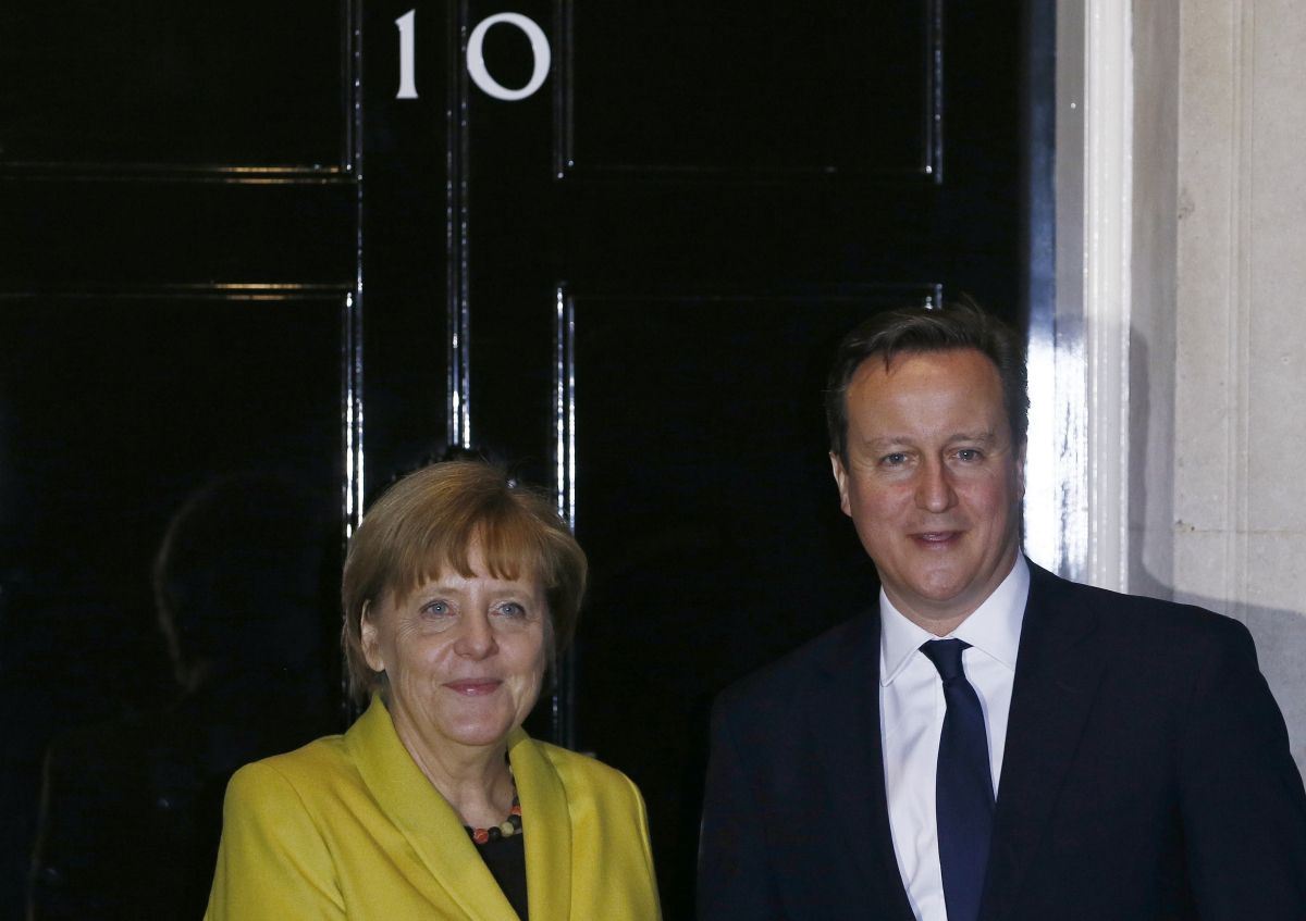 Cameron je povedal, da bosta z nemško kanclerko ob večerji načela tudi vprašanje ukrajinske krize in sankcij proti Rusiji, tudi v luči srečanja ruskega in ukrajinskega predsednika Vladimirja Putina in Petra Porošenka prihodnji teden. Merklova pa je dejala, da imata državi glede Rusije podobna stališča.