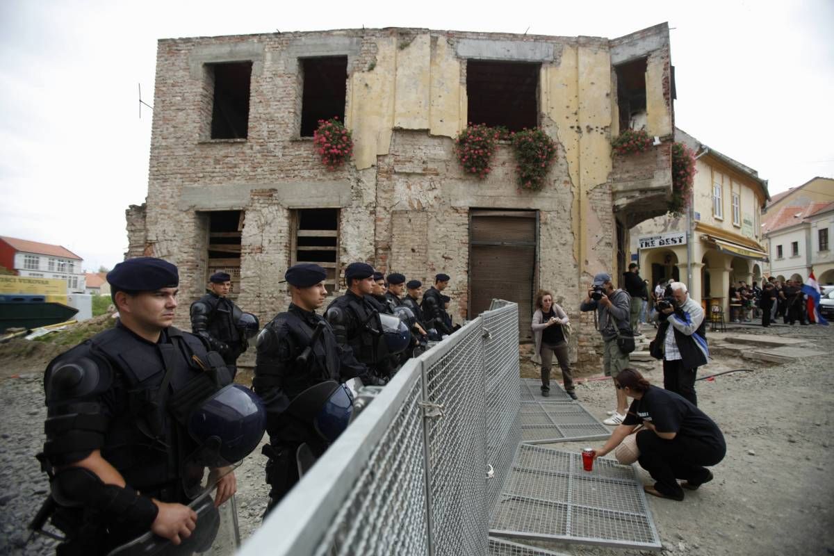 Medtem so na poslopje vukovarske policije včeraj znova postavili dvojezični napis, potem ko so ga v ponedeljek jezni protestniki uničili. Okrepljene policijske enote stražijo še štiri napise na različnih poslopjih državne uprave v Vukovarju.