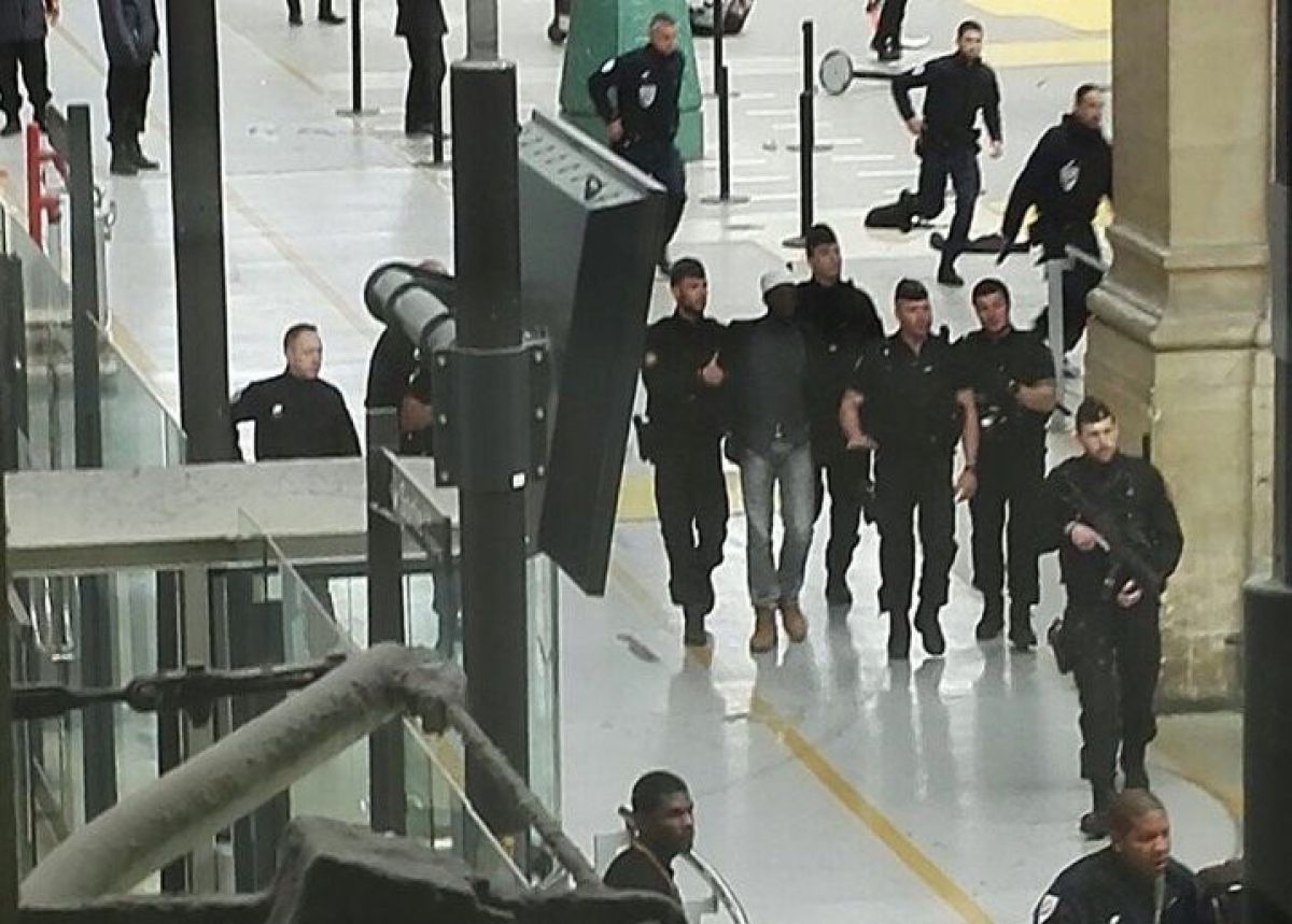 Na postajo je prišel moški z nožem, na katerega je bila takoj opozorjena policijska patrulja, ki ga je tudi nemudoma aretirala, je povedal neimenovani policijski vir. Pri tem ni bil nihče poškodovan, postaja je pa je bila za krajši čas zaprta. Po nekaterih navedbah naj bi se moški - gre za 20-letnega Malijca - sam približal policiji. Prijetju se ni upiral, njegov motiv pa zaenkrat ni znan.