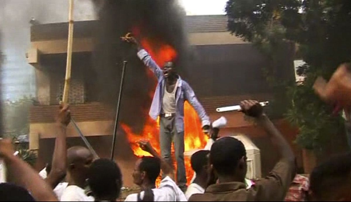 Okoli 5000 protestnikov, jeznih zaradi do muslimanov žaljivega ameriškega filma, je danes v sudanski prestolnici Kartum napadlo britansko in nemško veleposlaništvo. Na nemškem veleposlaništvu so podtaknili ogenj, pri čemer je nastala gmotna škoda, nemško zastavo pa so nadomestili z islamistično. O nasilnih protestih poročajo tudi iz Libanona.