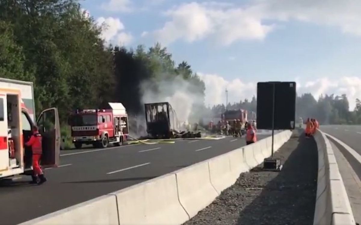 Na Bavarskem po trčenju zagorel avtobus; mrtvih 18 ljudi