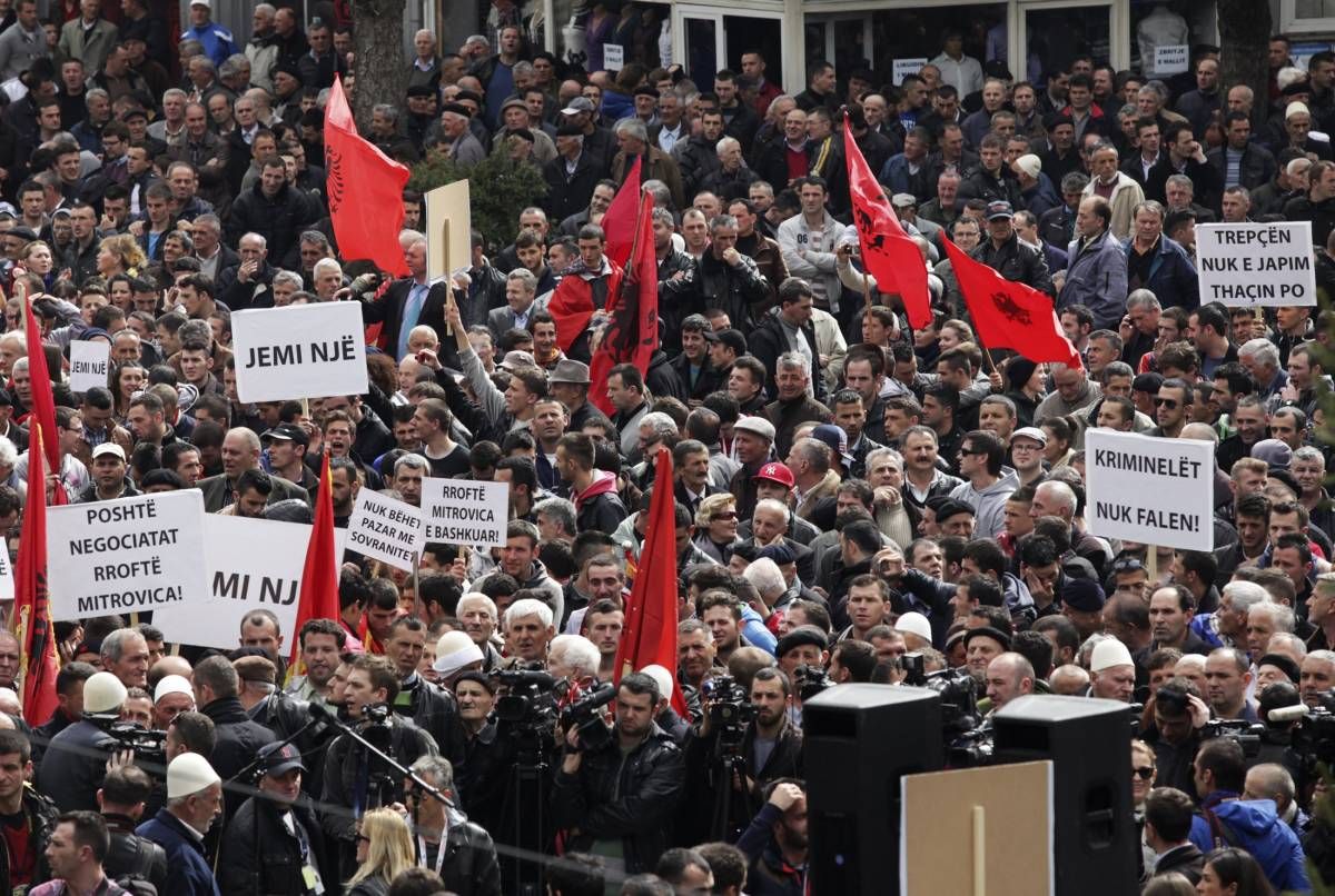 Več tisoč ljudi se je včeraj zbralo v Kosovski Mitrovici, da bi protestirali proti načrtovanemu dogovoru med Kosovom in Srbijo. S pogovori s Srbijo v Bruslju v okviru EU, ki so načrtovani za v torek, je kosovska vlada izdala ljudstvo, so bili mnenja protestniki.