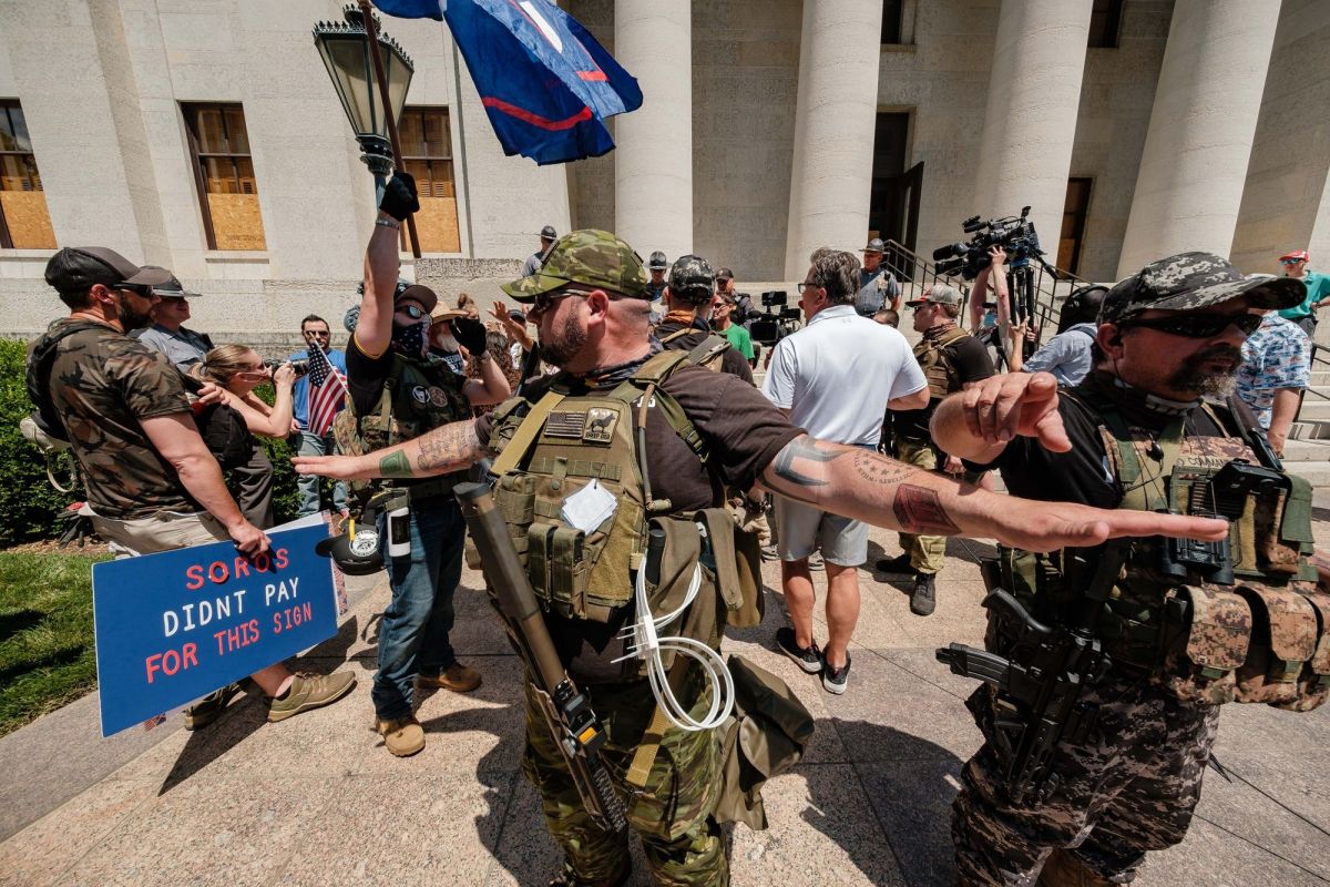 Protest proti obveznemu nošenju zaščitnih mask v Columbusu, prestolnici ameriške zvezne države Ohio, so zaznamovali do zob oborožen protestniki. Samozvana milica je »varovala« protestnike pred morebitnim nasiljem.