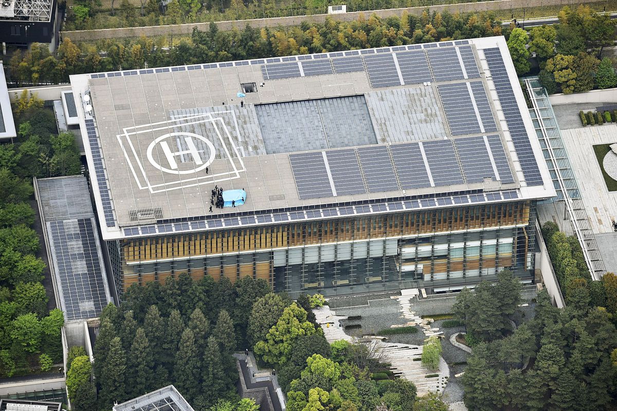Zaradi incidenta je streho zgradbe v središču Tokia zasedlo več deset policistov, zrakoplov pa so odstranili.