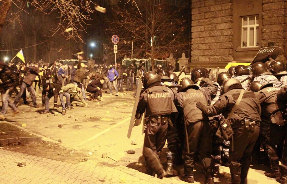 Do odločitve kijevskega administrativnega sodišča, da prepove proteste na omenjenem trgu, središču protestov, ter pred vladnimi poslopji in ministrstvi v središču prestolnice do 7. januarja 2014, je sicer prišlo po nasilni odstranitvi približno tisoč protestnikov s Trga neodvisnosti s strani policije v soboto, pri čemer je bilo ranjenih več deset ljudi.