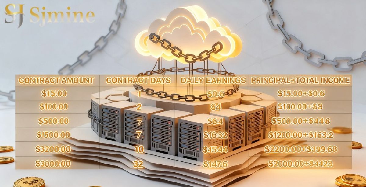SJMine ponuja različne rudarske pogodbe, ki ustrezajo različnim ciljem in časovnim okvirjem. Vse pogodbe so popolnoma pregledne, uporabnikom pa omogočajo spremljanje zaslužkov v realnem času na platformi.