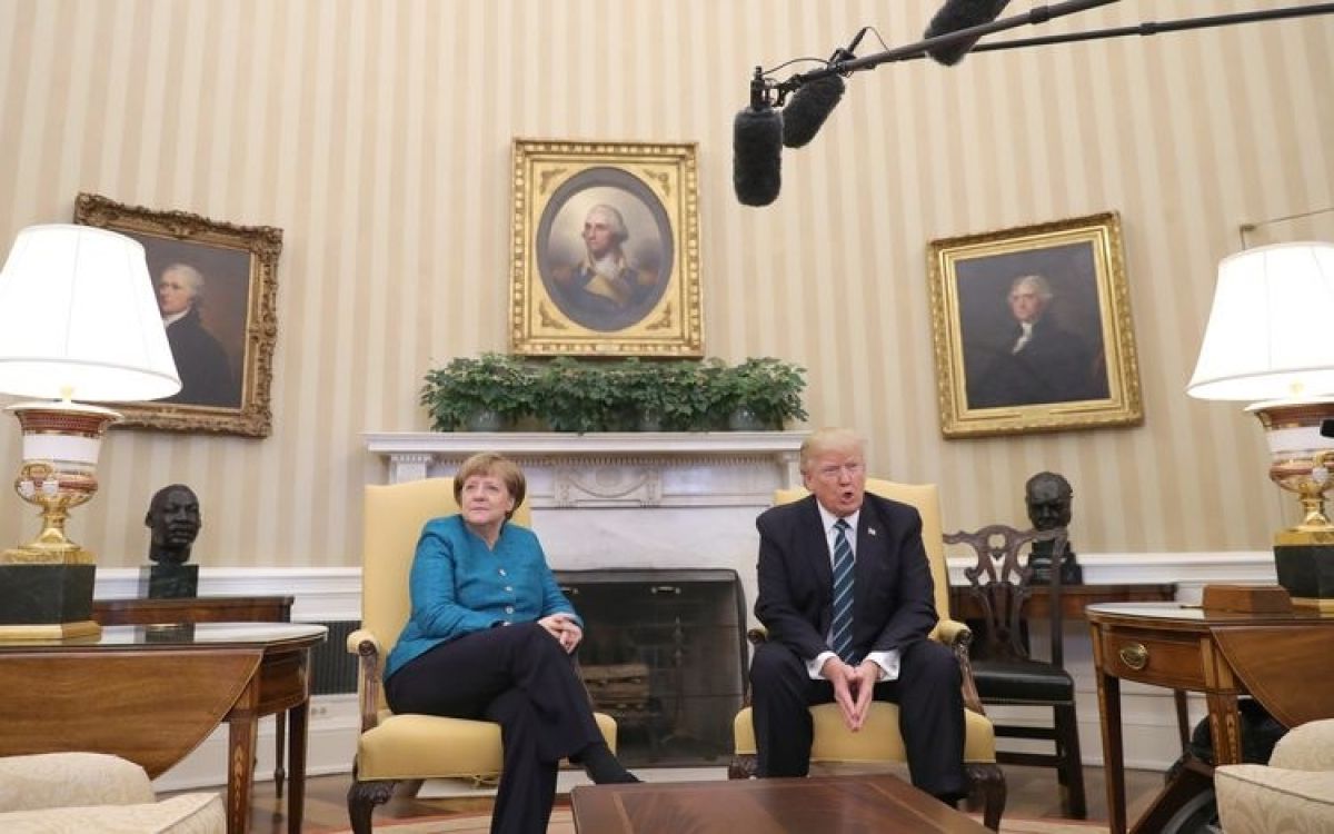 Merklova in Trump sta za foto termin en ob drugem sedela na foteljih v Ovalni pisarni Bele hiše. Fotografi so ju pozvali, naj si sežeta v roke. Nemška kanclerka je ameriškega predsednika vprašala, ali to želi - on pa se na to ni odzval. Mnogi ocenjujejo, da se je na obrazu Merklove zarisalo razočaranje.