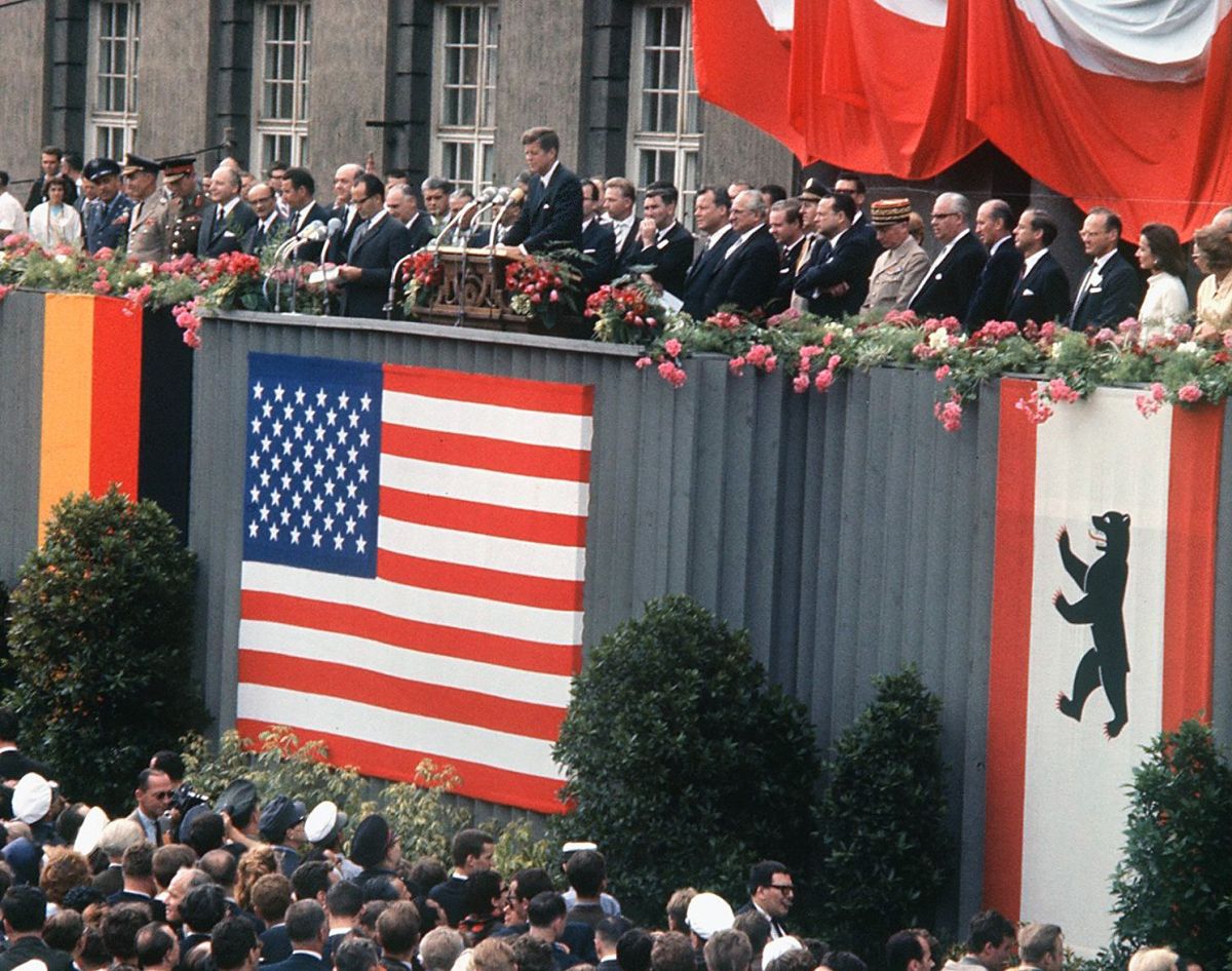 Kennedy je, če zgodbo aktualiziramo, Zahodni Nemčiji zagotovil, da jo bo pred morebitno rusko agresijo zavaroval Nato in da je to moralna obveza, za katero stojijo Američani. Svoboda, o kateri je govoril JFK, ki se je končala 150 metrov za njegovim hrbtom, kjer je stal zid, zgrajen le dve leti prej. Berlinski zid so zgradili, potem ko je vzhodnonemško partijo zagrabila panika zaradi masovnih pobegov prebivalstva na zahod.