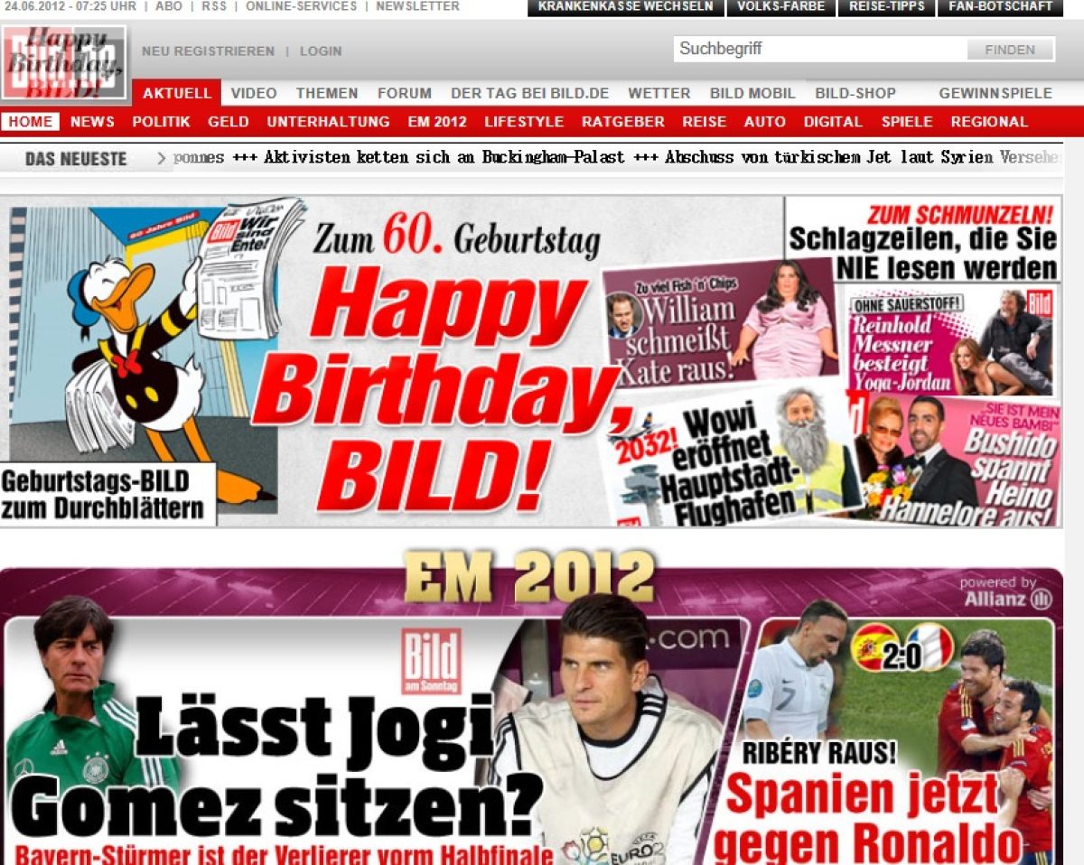 Najbolj prodajan časopis v Evropi, nemški dnevnik Bild, je ob svojem 60. rojstnem dnevu zabeležil zanimiv rekord. Nemškim gospodinjstvom so namreč izdajatelji Bilda poslali 41 milijonov izvodov posebne, brezplačne izdaje dnevnika, kar predstavlja največjo distribucijo brezplačne posebne izdaje kakega časnika.