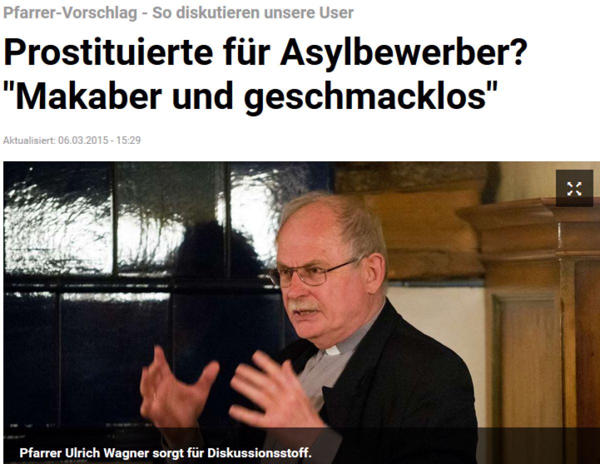 Ideja nemškega protestantskega pastorja Ulricha Wagnerja, ki je marca letos za lokalni časopis Merkur predlagal, naj država prosilcem za azil priskrbi prostitutke, da ne bodo spolno nepotešeni migranti nadlegovali lokalno prebivalstvo, še ni uresničena. Toda spet so se pojavile razprave, da bi bila taka rešitev za Nemčijo dobra, saj se država sooča z vse več posilstvi, ki jih nad domačinkami zagrešijo migranti.