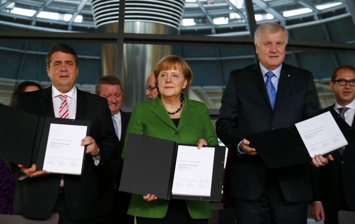 Vodstva nemških krčanskih demokratov (CDU), krščanskih socialistov (CSU) in socialdemokratov (SPD) so po 17-urni maratonski seji včeraj zgodaj zjutraj dosegla dogovor o veliki koaliciji. Če bo šlo vse po načrtih in bo pogodbi pritrdila tudi članska baza SPD, bo Nemčija tako tretjič v svoji zgodovini dobila črno-rdečo vlado.
