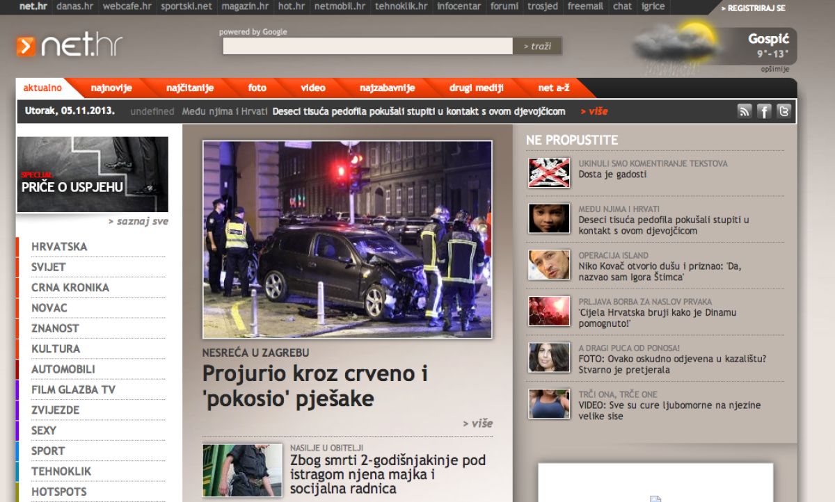 Priljubljeni hrvaški spletni portal net.hr je ukinil komentarje bralcev zaradi prevelikega pritiska sovražnega govora s strani manjšega dela njihovih bralcev, ki so zlorabljali prostor za grozljive žaljivke. Zavedajo se pomena interakcije z bralci, zato so ostali odprti za odzive preko novega elektronskega poštnega naslova.