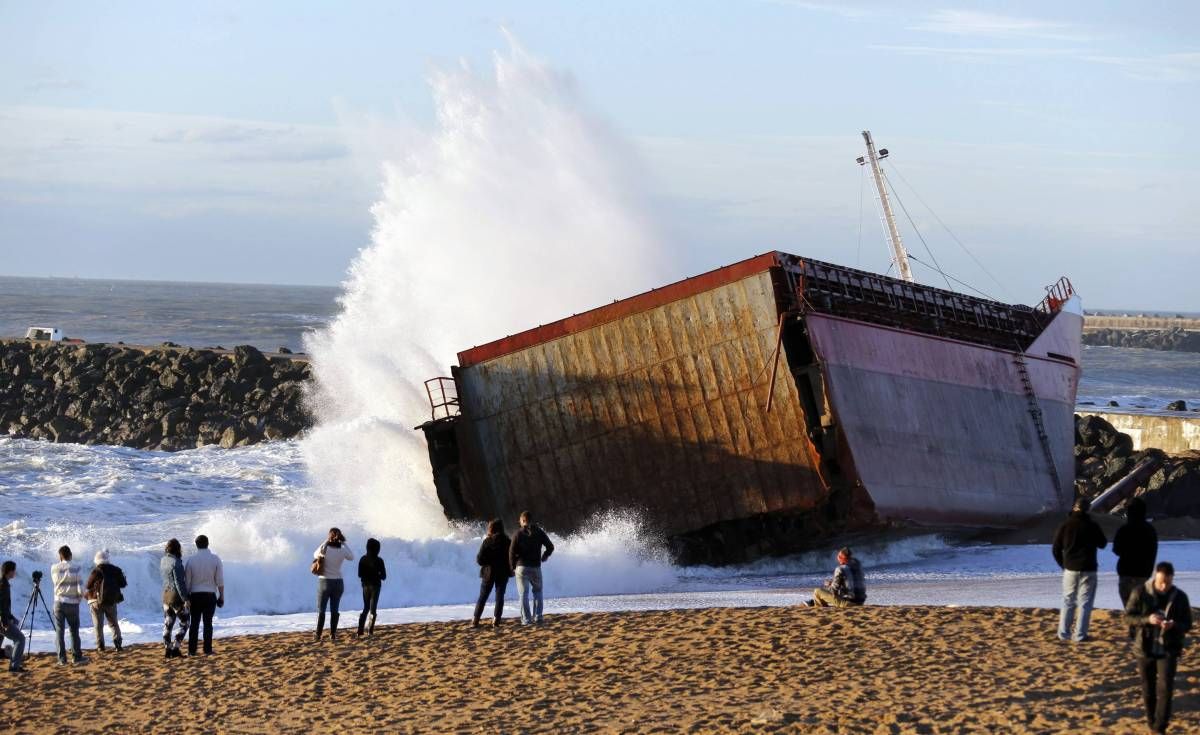 V sredo se je zaradi neurij v francoskem pristanišču Bayonne v zaščitni obalni zid zabila španska tovorna ladja, ki jo je presekalo na pol, poroča francoska tiskovna agencija AFP.