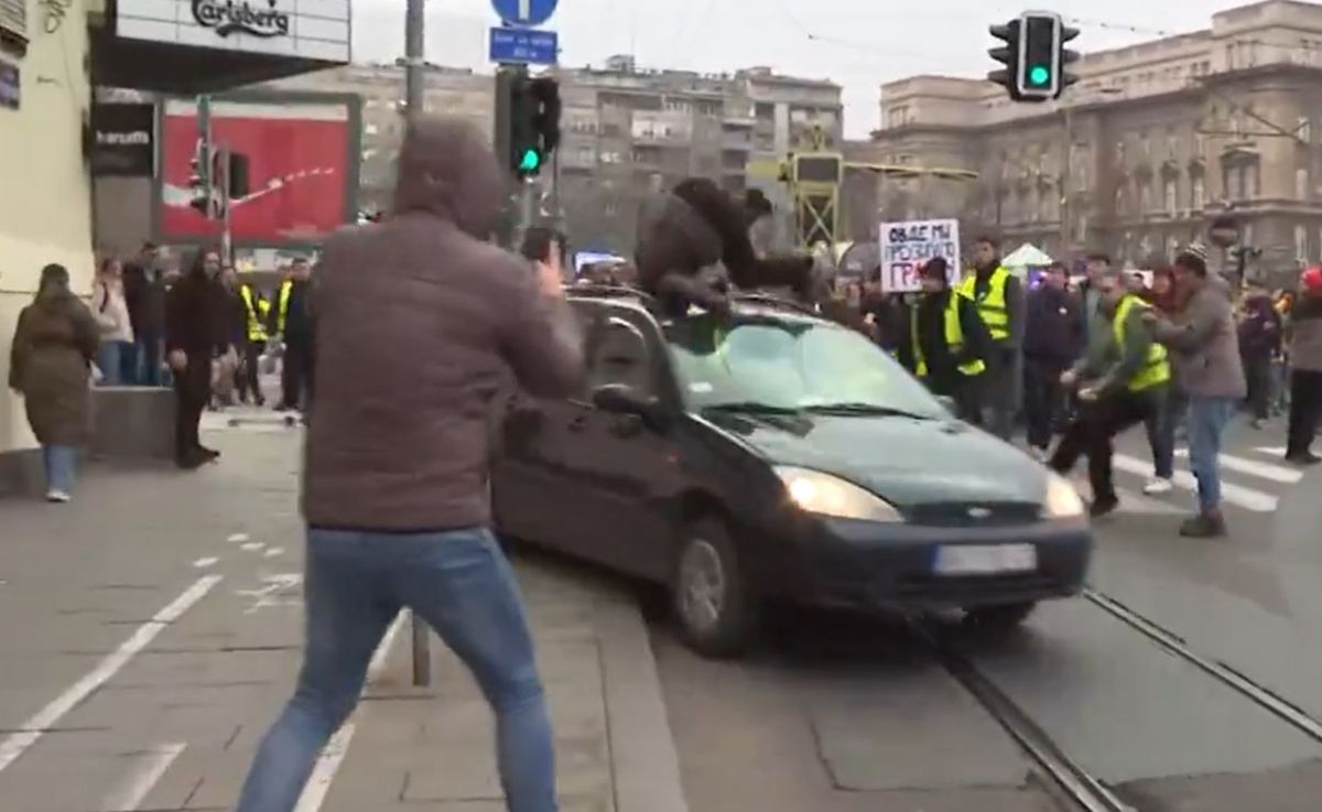 Voznik avtomobila je okoli poldneva zapeljal med protestnike in pri tem zbil študentko beograjske pravne fakultete, ki je stala na pločniku. Nekaj časa jo je nosil na krovu vozila, nato pa je padla na tla.